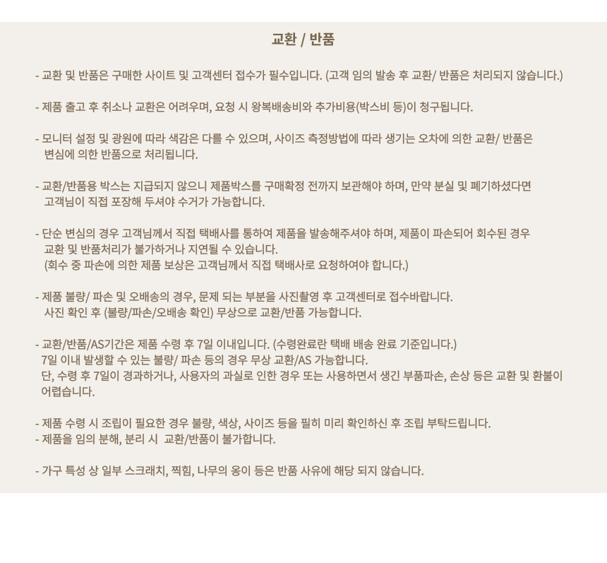 | 교환/반품/보증 조건과 절차 | ※ 교환/반품이 불가한 경우: